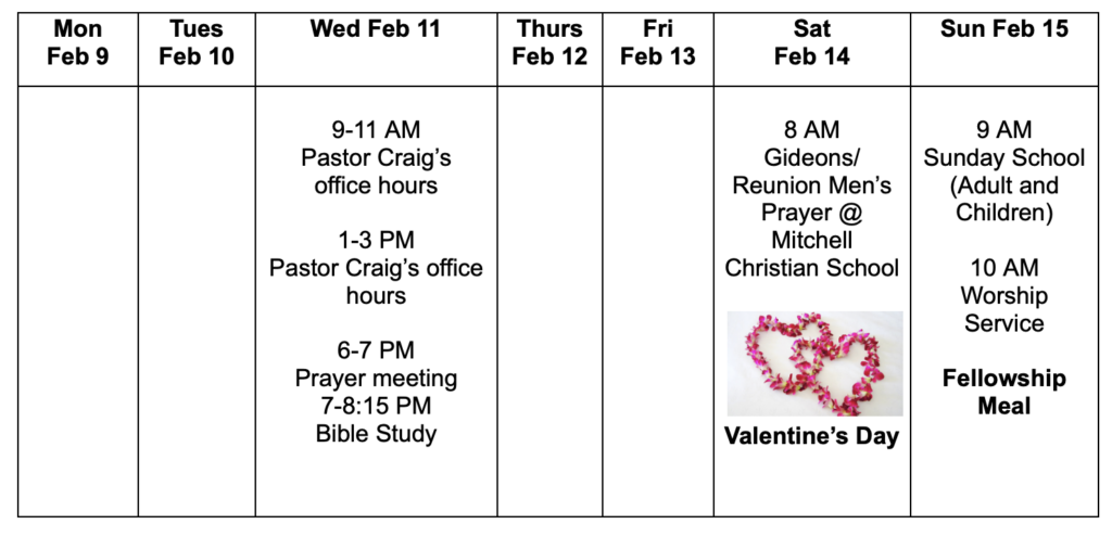 – Gideon’s Prayer Breakfast will be at 8 AM @ the Mitchell Christian School